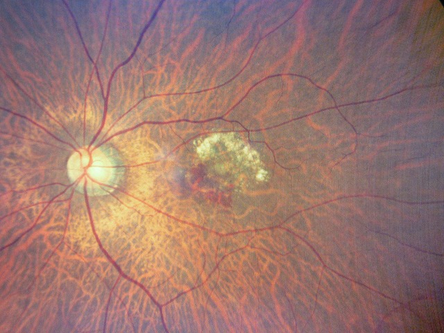その結果、視力が低下したり、ゆがんで見えるようになったりします。さらに、新生血管の周囲には「線維組織」と呼ばれる膜のような組織が一緒に出来ることがあります。これが収縮して網膜を引っ張ると「牽引性網膜剥離」という状態になり重度の視力障害を引き起こしてしまう事もあります。