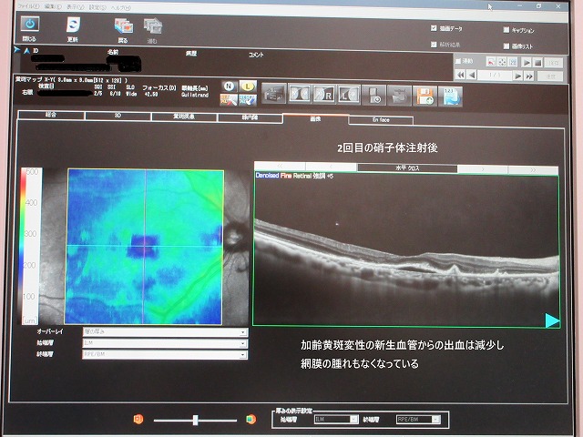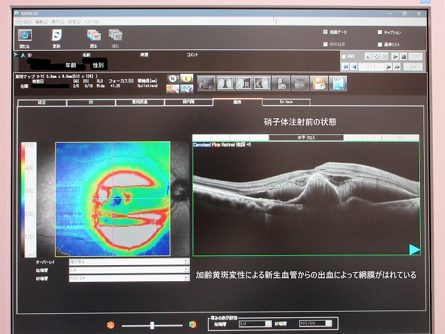 加齢性黄斑変性:新生血管によるむくみや滲出液・出血の貯留を評価